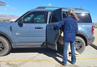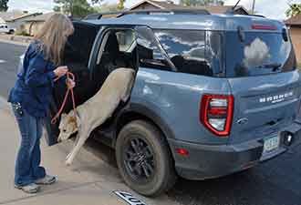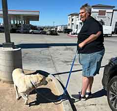 "Made a stop at burnt wells rest area, gave a little water, walked around stretched those legs! She listens well, she wanted to keep going but all I said is this way and she followed! Sweet girl!"