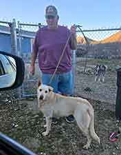 Debbie was found as a stray in Arvin, California. It's obvious she has been used for breeding (multiple times) and it's our guess that when she could no longer produce, she was discarded. Her shelter notes indicate: "Walks well, friendly with handlers. Calm in yard, liked to just wander." Debbie is scheduled to join the group at Husky Camp on Monday, January 26th, until room (and transport) can be arranged for her here in Phoenix. UPDATE 1/26: Our thanks to Jon and Chuck at Husky Camp for liberating Debbie from the shelter!