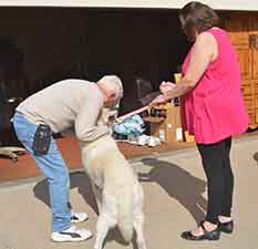 ![]() Not wanting Lobo to go into a boarding situation, we posted him on our website and prayed that someone would be ready, willing and able to help. Our prayers were answered when foster mom Lynn emailed and said she would provide Lobo with a foster home. UPDATE 1/24: We were finally able to go and meet Lobo today accompanied by potential foster mom Lynn and her friend, Deb. He was very hesitant about meeting us, but once we asked Paul to go back into the house and leave us outside with Lobo, he calmed down and immediately started to warm up to Lynn (thanks to the delicious treats she had brought with her).