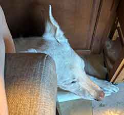 FOSTER UPDATES: Lynn reports that Lobo is settling in very well and has become comfortable with her, but he still hides when anyone (even Deb) comes into the home. She is going to work on socialization, which has been sadly lacking for poor Lobo.