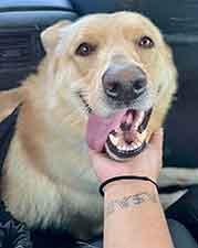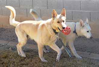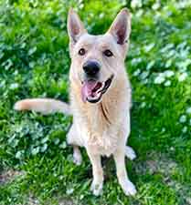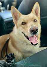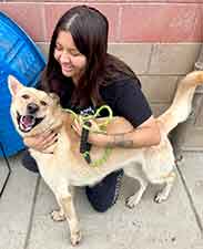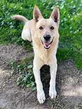 We're going to give him some time to settle in and get his "desert legs" before he will be ready for introductions and adoption. We'll also try and get some photos of him when the sun comes up! UPDATE 1/5: Mac had his first "practice" introduction today and almost wound up getting adopted! He charmed his way into the hearts of mom, dad and the three kids and performed all of his tricks for them, but when it came to their female shepherd, the answer was NO. Mac could not be deterred from trying to mount her every chance he got. We were very disappointed when the family chose another dog, but we're thinking Mac could be perfectly suited to be an only dog OR, given more time, he could become less interested in mounting/breeding. He was only neutered about 4 weeks ago, at which time testosterone levels only begin to drop. According to our vet resources, "On average, it can take several weeks to a few months for a dog's testosterone levels to stabilize at a lower rate. During this time, you might still observe some behaviors influenced by the hormone, although they typically decrease in frequency and intensity." If Mac had been neutered at an early age, this would probably not be an issue; however, since he was neutered as an adult, it takes more time (especially if Mac has been used for breeding, which we have no way of knowing).