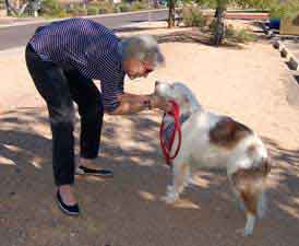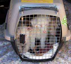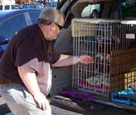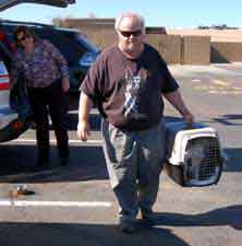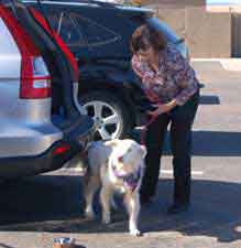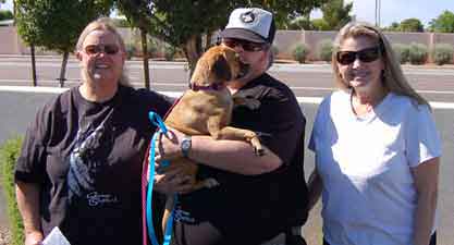 ![]() Nancy & Bert help Petunia Puggle (a beagle pug mix) on her journey through Arizona. Petunia was rescued in Tulsa, Oklahoma, and was making her way to San Diego to a rescue group. |