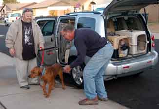 TWO HOUNDS FROM SEDONA TO PHOENIX | ![]() Ty (a Bluetick Hound) and Julia (a Black & Tan Coonhound) are on their way from the Sedona Humane Society to their forever homes in San Diego, with a little helping hand from the volunteers of White German Shepherd Rescue. TWO SCHIPPERKES FROM PHOENIX TO MARYLAND | ![]() One of our staff members helped 2 schipperkes, Rico and Blackberry, get to their new home with Mark and Terri on the east coast by transporting them from Phoenix all the way to Maryland! ONE POODLE FROM PRESCOTT TO TO PHOENIX | ![]() Bert & Nancy helped transport a surrendered poodle named Jessie from Prescott to her foster mom, Deb, in Phoenix. | |||||||||||||||||||||||||||