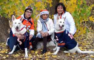 | ![]() Christmas cheer from Miyu (formerly Snowball) and her family DECEMBER 2013 | ![]() Raja (formerly Zander, one of Angel's puppies born in 2007) and his pals enjoy the mountains CHRISTMAS 2013 |