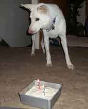 | ![]() Cordelia (now "Happy Girl") rescued from a California shelter in 2014 and adopted the same year ~ she loves her early morning runs with her dad JANUARY 2017 | ![]() "Wednesday, 1/11/17, was Sawyer's 6th birthday! I'm not really sure if it is his birthday since he is a rescue, but it is the day I picked to celebrate his birthday. He had doggie birthday cake which he scarfed down, then relaxed and went to sleep with an antler growing out of his snout, lol." CHRISTMAS 2016
