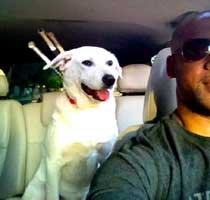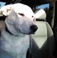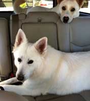 | ![]() Charlie (formerly "Colonel") above and sister Zoe (formerly "Snow White") enjoy an afternoon ride in dad's car
