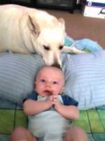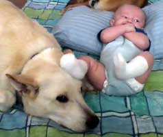 FEBRUARY 2012 | ![]() Trigger (adopted in 2006) didn't even miss a beat when baby Leo was added to his pack...who says dogs and new babies don't mix? HAPPY NEW YEAR 2012! | ![]() Daisy (one of Angel's pups adopted in 2007) brings in the new year with a run in the park