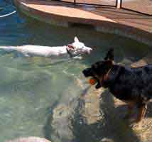 | ![]() Duke and Sydney (formerly Wolfy) go duck hunting -- in their own swimming pool JUNE 2012