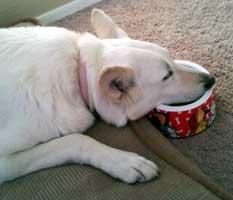 | ![]() Contessa (adopted in December 2010) is going to make sure furbrother Zeus doesn't get any of her food if she has to sleep in her dish to do it! JUNE 2012
