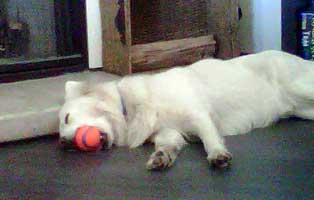 | ![]() Even in his sleep, Kona (from the Lancaster California shelter) is chasing his ball JUNE 2012