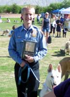 | ![]() Jaeger (formerly Mikey) and his family attended a Police K9 benefit in Tucson this past week with mom Karen and brother Mark, who is a Junior Police Explorer. Jaeger and Mark won the Owner/Dog look-alike contest! APRIL 2012