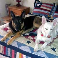 | ![]() ![]() It's a little early for Halloween, but that doesn't deter Rio (China) from showing off her "Yentl" and "Little Devil" costumes ![]() REDWOOD & BUFFY CELEBRATE JULY 4th IN STYLE NASH & JINGLES (adopted in 2008 & 2004, respectively) have moved to Telluride....LUCKY DOGS