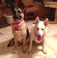 | ![]() Maui (formerly Mary from the Lake Elsinore Shelter) celebrates the addition of new brother, Bear, to the family APRIL 2012