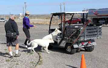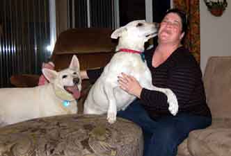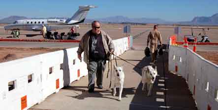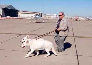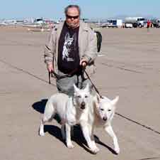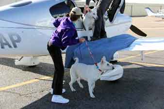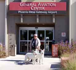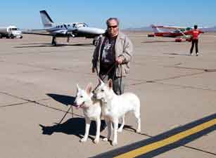 Pick up at Angel and Crystal's final destination (Williams Gateway Airport in Mesa) will be handled by staff members of White German Shepherd Rescue TRANSPORT UPDATE 10/26 7:30a: The girls are "WHEELS UP" at Denver airport. UPDATE REPORT FROM DAVE IN ALBUQUERQUE: "Both dog ARE very nervous and yes Crytal IS going into season. So far, all is well and they are tolerating the pack here."