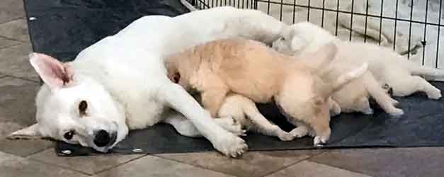 UPDATE 11/29: Charlotte started whelping her puppies this afternoon. At last count (around 2:30p) we had 1 white female, 1 white male, and 1 "golden" boy!