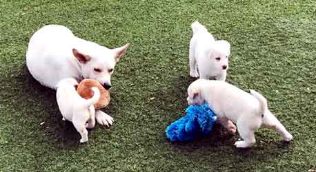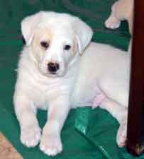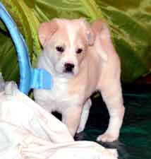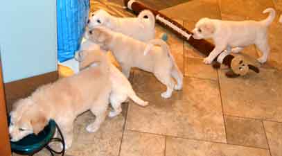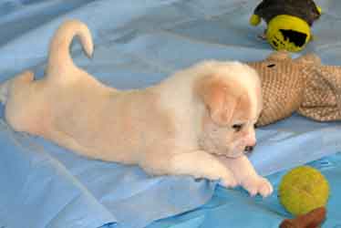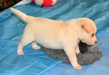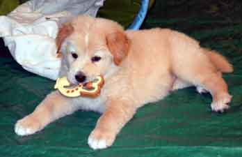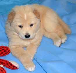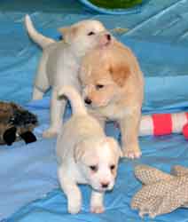PUPPY UPDATE 12/22: If we had to guess at this early age, we would have to say that Charlotte's puppies are part shepherd and part Golden retriever. The jury is still out.