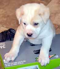 UPDATE 12/31: The puppies are just one day shy of a month old today, so we decided that a photo shoot was in order, as well as a weigh-in: Captain: 7 pounds
