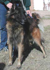 The family that was supposed to have adopted Zorro encountered a medical problem with their other dog who has since had surgery. They are concerned about undue stress on their recovering dog so have opted to wait on adopting another. Zorro is now available for adoption. Zorro is an excellent and desirable example of his breed's standard. He is housebroken, obedient, calm in the house and generally very well behaved. He loves children, however, Belgian Tervurens are herders and as such tend to nip (usually on the butt) small moving beings in an effort to herd and control their movement. Therefore, Zorro will not be placed with any small children or animals (this includes small dogs, rabbits or cats). He walks well on and off lead. He doesn't appear to have had any formal training (sit, down, stay, come) yet he wants to do and understand whatever you ask and loves being your shadow. (He does sit ;-) At his foster's home, Zorro has been exposed to horses, chickens, ducks (as well as four other dogs) and surprisingly, has not even hinted of giving chase. Rather unusual for a herding breed, (although, he has not been left with them unsupervised). He gets along well with both male & female dogs, yet is prone to following his human around and appears to prefer the company of women. His beautiful, long, plush coat will require regular brushing and/or monthly grooming. Other than that, he's an affectionate, loyal, easy keeper...This young boy is an exceptional find! Zorro is about 3 years old, neutered, and will be microchipped. UPDATE: Zorro went to the vet last week for his shots and a final once over before heading to his new home. He was found to be in excellent health and coat, weighing in at just under 60 pounds. He has been microchipped and Buddy Tagged and is ready to move in with his new friend, "Valadee," a rescued Belgian sheep dog. His new mom had been on a waiting list with the American Belgian Tervuren Club's (National) Rescue. CONGRATULATIONS KATHY ON A RARE FIND! ZORRO WENT HOME ON FEBRUARY 8TH AND IS DOING FINE...EVEN WITH THE CAT! |
