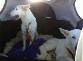![]() Loaded and ready for takeoff ![]() The dogs settle in for the flight to Phoenix ![]() Are we there yet? | ||||||