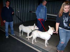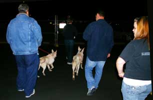 ![]() The dogs lead Tom and David, followed by Katherine, thru the security gate and into the terminal for the ride to their new foster home | |||